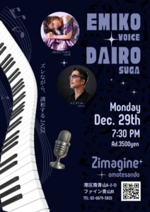今年もお疲れ様祭り!EMiKO のバースデーライブです。豪華5名編成でジャズ、ボサノバ、MPB、ラテンの曲をEMiKO VOiCE ワールドでお届けします。ぜひ遊びに来てください。